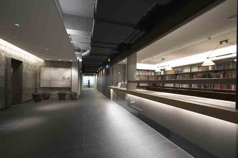 鳳甲美術館沈穩色調的廊道與服務台。(鳳甲美術館 提供)