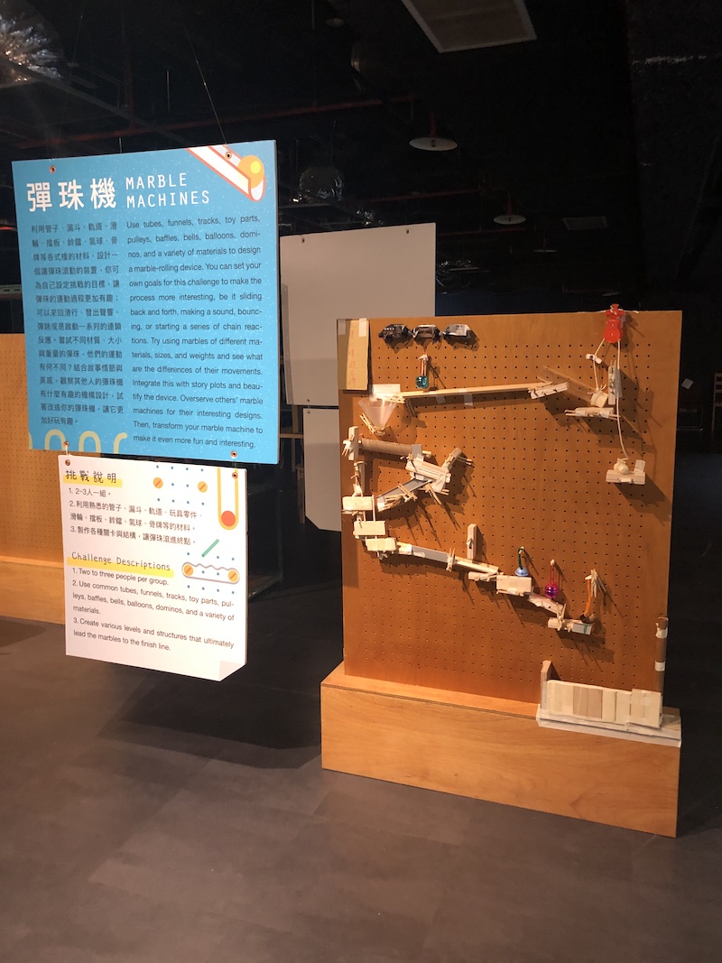 動手做(hands on)是科學展覽中時常使用的手法之一。科教館中深受大小朋友喜愛的「敲敲打打工作坊Tinkering Workshop」常設展,期望觀眾不只是單方面接收,而是成為一個主動角色。透過6個挑戰任務:塗鴉機、風管與飛行器、快樂城市、彈珠機、光影遊戲、連鎖反應,將展品設計的權力賦權給觀眾,使其在動手做的過程中觀察科學,並在錯誤中了解原理,從玩耍中得到學習科學的成就感。
