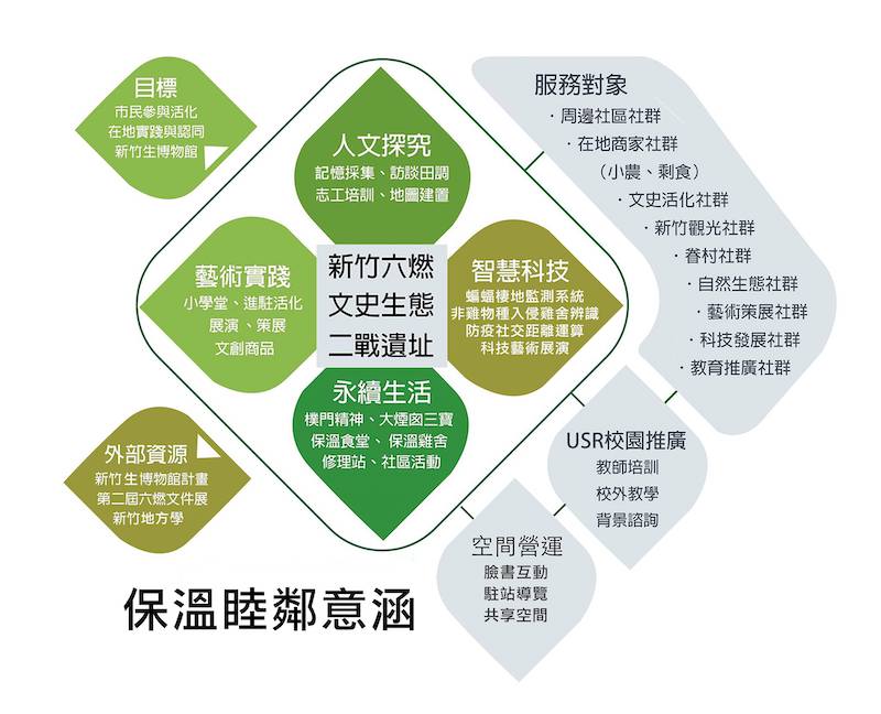 由國立陽明交通大學於2018年起所推動執行的「新竹生博物館」(Hsinchu Living Museum)計畫〔註1〕,源自於本團隊承接新竹市文化局六燃「大煙囪廠房基地保溫睦鄰駐站計畫」,同時在深耕計畫辦公室的大力支持下,以「活隱喻・活博物館」 (Living Metaphor.Living Museum)為核心理念,推動六燃博物館計畫,將正在孕育中的六燃博物館文化園區命名為「新竹生博物館」 (Hsinchu Living Museum),展開博物館內容製作與在地深耕的實踐行動。