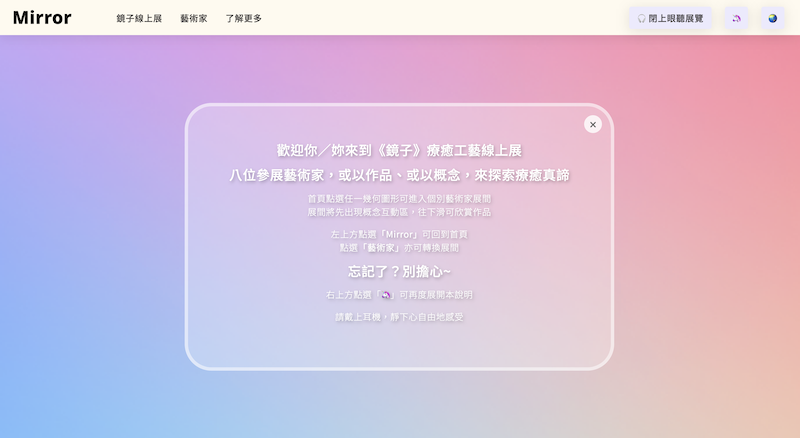 《鏡子》線上療癒工藝展網站入口。(《鏡子》療癒工藝線上展、台灣藝文空間連線TASA協會 提供)