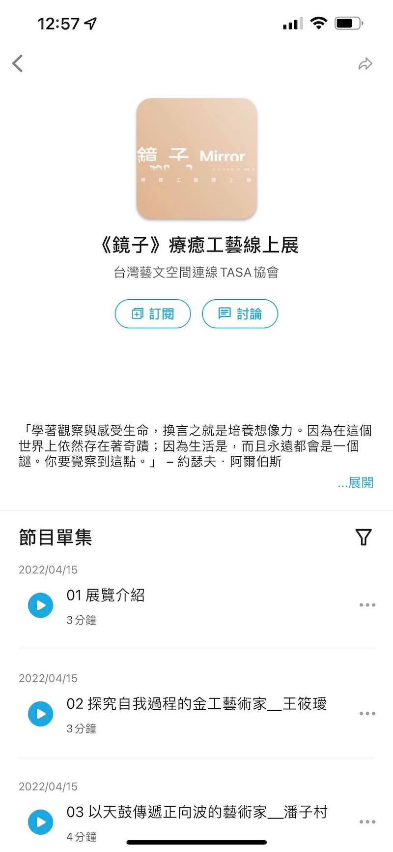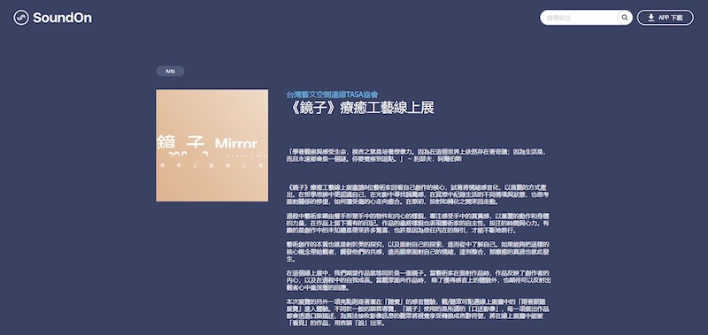 然而,上述經由繁瑣製作過程完成的口述影像語音資訊,在操作體驗上卻僅能從展覽專網右上角找到「閉上眼聽展覽」字樣,點選後連到外部SoundOn「播客」(Podcast)網站,方能逐一讀取語音,對於視障者來說,此需重新在另外頁面操作的方式,確實使其較為不便。但是值得鼓勵的是,有別於博物館於展場內提供的口述影像文字,由視障者運用語音朗讀方式取讀內容的作法,或以二維碼(QRCode)掃碼讀取語音內容〔註5〕,又或實體展場中運用微定位系統藍芽裝置進行自主導覽形式〔註6〕,策展單位考量現今大眾播客使用率高,且能夠於不同平台操作(例如:可用手機或平版應用程式以單純播放聲音為主的媒體系統),如此能夠進一步擴大展覽行銷宣傳及使用方式,且僅需一機在手、不限場域就能夠使用的特性,應可作為疫情時代提供視障者觀展資訊之新興模式〔註7〕。