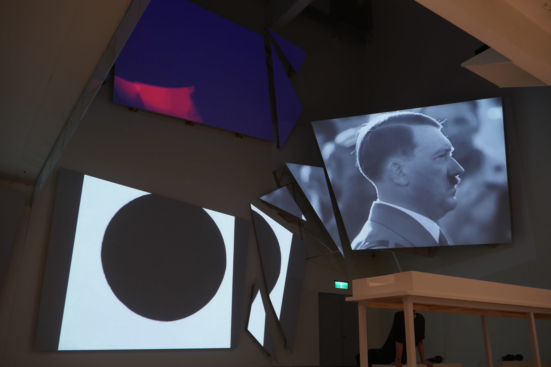 這些充斥在展間的各種媒體:攝影、電影、錄像、繪畫、報章雜誌、書籍等,不僅是詩意展現或文化轉譯,更有許多政治與歷史的隱喻。其中一段影片來自德國導演萊尼‧里芬斯塔(Leni Riefenstahl)拍攝的知名紀錄片《意志的勝利》(Triumph des Willens),記錄希特勒的遊行與各種造勢過程,並以特殊的鏡頭及配樂,讓本片成為電影史上最重要的政治宣傳片。這些歷史看似與你我生活連結薄弱,然而仔細思索現代社會事件,赫然發現美國總統川普的當選只不過是以社群媒體的應用取代了早期盛行的電影或紀錄片的影響力,提醒世人不能忽視這些影像呈現所帶來的歷史反思與跨時空媒體政宣的批判觀念。在臺灣的選舉更能突顯媒體暴力與政治人物的造神運動,讓國家政策被娛樂化與對立化,缺乏討論與分析的空間。