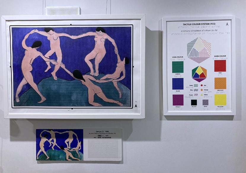 In order to meet the conservation requirements of artifacts or specifications of multimedia works, visual art venues are often dimly lit, no touching of artworks, provide explanation on wall tags with tiny fonts. These restrictions intimidate the visually impaired. Even some exhibitions provide audio guides, most targeted general audience, thus content of those recordings are mainly background information of the exhibits, which may not be adequate to make up for the absence of visual details. Aware of the needs of visually impaired people for accessible art exhibitions, Hong Kong based social designer Rico Chan developed the “Tactile-Audio Interaction System (TAIS)”. In 2016, he founded Beyond Vision Projects (BVP), a non-profit organization that promotes social equality and inclusiveness by working on sensory experience.