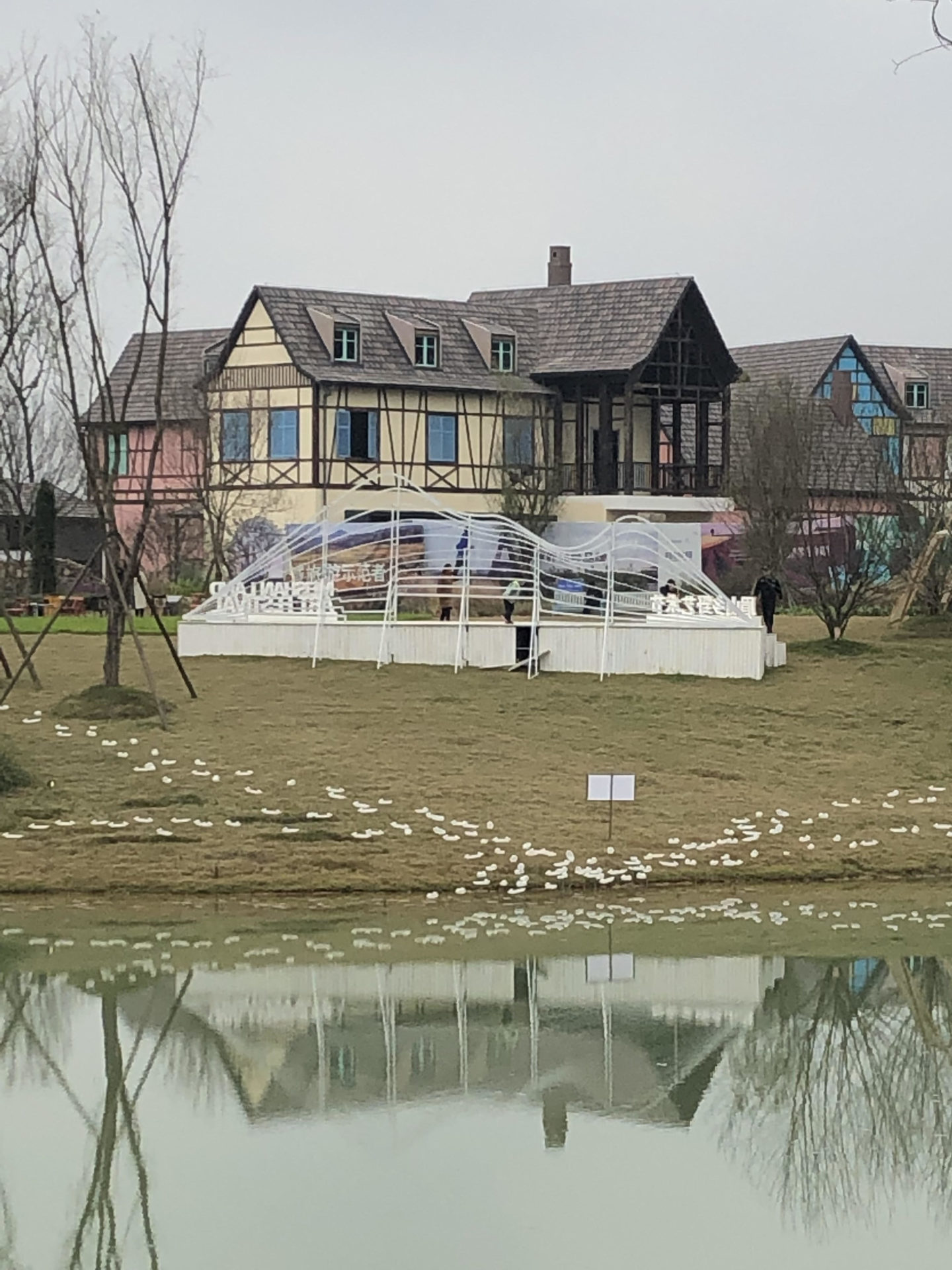 各類鄉村振興計畫推動之下,落在四處農田裡的可能是日本式庭園、法國鄉村小鎮,又或是歐洲花園,各種景致取代農作物,陸續被種植在大片的土地上,於是佔中國土地近15%以上的農耕地、農田踏入被改造的路途上,在現實中大規模改變土地樣貌,也承載著更大的想像。