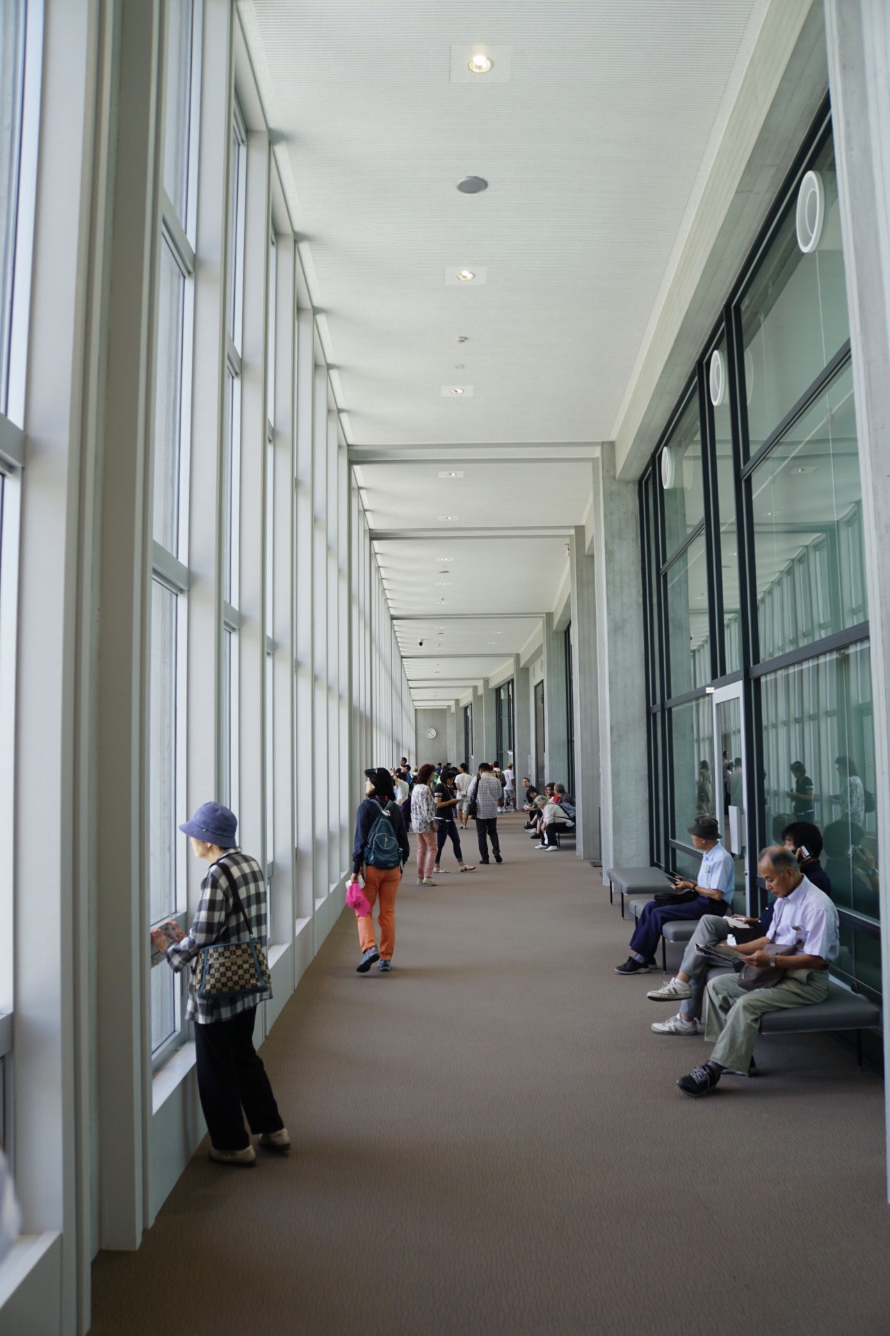 走出主展場後,接續在後的是一條光明的走道(圖6),參觀民眾可以從大片落地窗,看見和平紀念公園中的「原爆死者慰靈碑」、「原爆圓頂」向外連成一條中心線,此種空間安排及設置,象徵著集體創傷的儀式性標誌和轉化。從展覽初始到尾聲,觀者從1945年美軍照片中一片塵埃灰燼的廣島現場,回望今日的廣島,由展場調性、動線的轉換(由漆黑曲折的展場走向光明通直的長廊),即可鮮明地意識到設計巧思。廣島和平紀念資料館試圖透過敘事線路的操作,將創傷撕去特定國籍、身分,標誌為全體人類皆需深思、討論的議題,其反戰及「和平」主題的傳達,強烈表達其展示的核心主旨:「別再有下一個廣島」(No More Hiroshimas)。