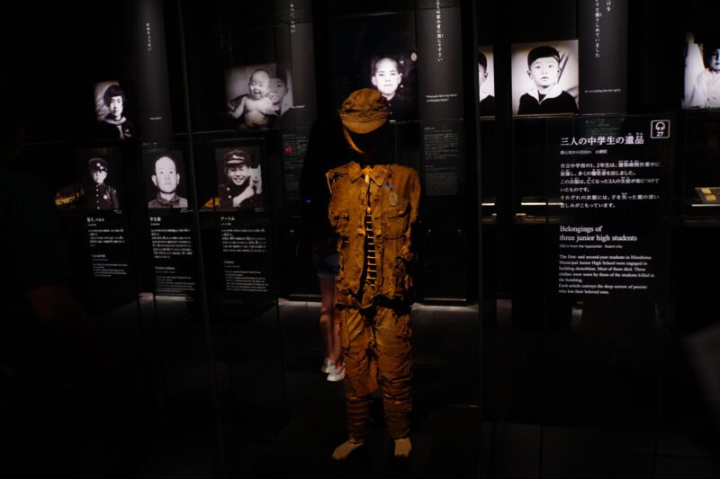 The main exhibition hall is divided into four subjects: “Devastation on August 6”, “Damage from Radiation”, “Cries of the Soul” and “To Live” with the major theme named “Reality of the Atomic Bombing”, accompanied with a photo of a girl with many wounds. The girl in the photo is named “Yukiko Fujii” and her story would only be unveiled when the viewers arrive at the end of the exhibition – the bright area at the end of a long dark aisle. When the atomic bomb dropped, this 10-year-old girl was sitting in front of the desk in the house 1,200 meters away. After a flash, Yukiko Fujii was stabbed by the glasses shattered by the explosion and her right hand fingers were melted and stick together by high temperature. But she survived; got married and gave birth to two sons. She was diagnosed with cancer and treated, but the cancer spread and she refused to take therapy anymore. Yukiko Fujii died at 42 years old in 1977. We never know if the cancer was caused by radiation; however, it seems that it is the only sad but comforting story of victims in the whole exhibition. At least, she had a wonderful family life before she passed away.