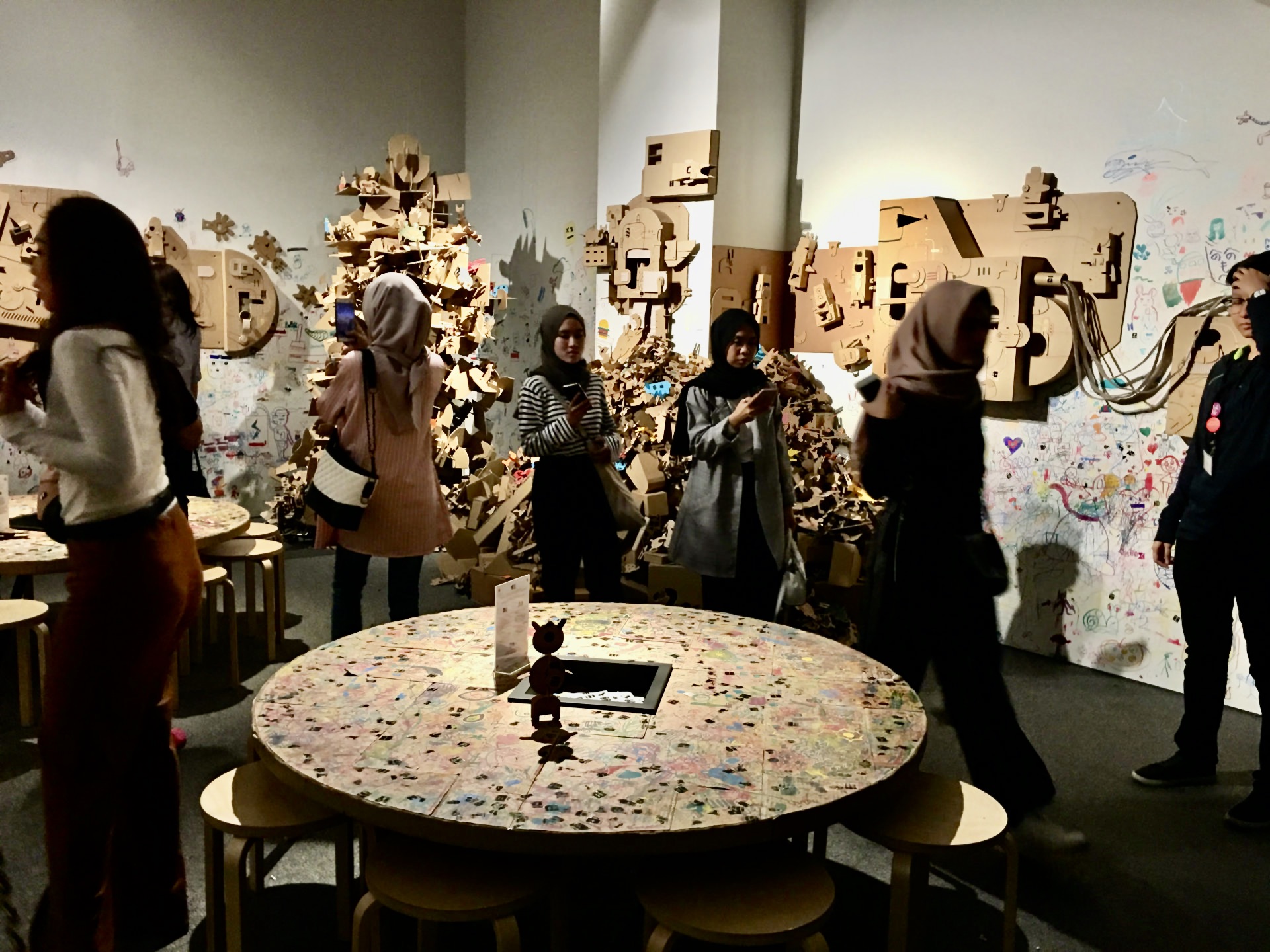 The museum was holding special exhibition of Yayoi Kusama during our visit. There are many works from Yayoi Kusama in the collections of Haryanto Adikoesoemo; therefore, the special exhibition was held in MACAN right after Singapore. MACAN is located in a mall-like building, where it is hard to reach without an obvious signage. The ticket booth of the museum lies in the second floor and there is a wild space with lockers, café, Kids’ Art Space and counters in the third floor, which is also the entrance of the exhibitions. The areas for the special exhibition of Yayoi Kusama had been arranged on the fourth floor. The curator Aaron Seeto said that the museum is planning to expand the space and the fourth floor will be used as an area for permanent exhibition, upgrading regularly with theme-based collections and providing more access to the public.