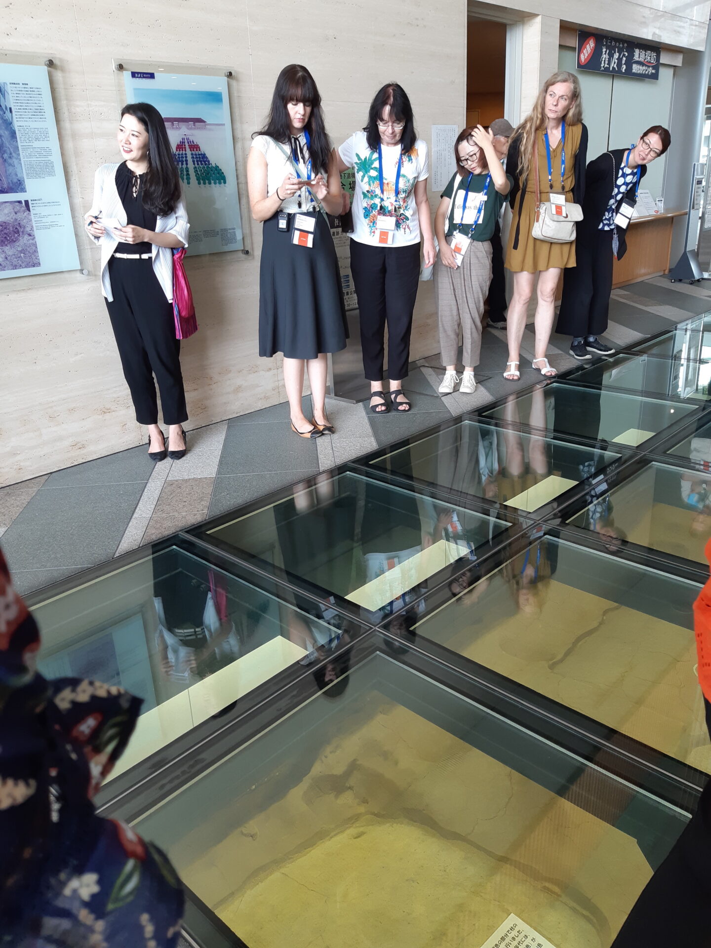 大阪歷史博物館B1保存的前期難波宮遺跡(以燈籠表示柱洞所在)