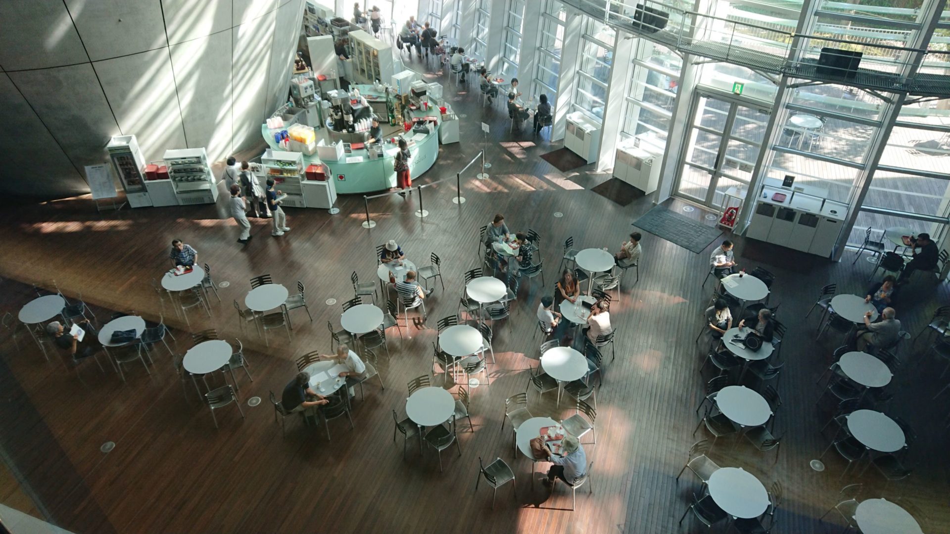 透明博物館秉持「開放」的核心理念,打造民眾能參與的公共場域,追求內部運作機制的公開透明,以及承認歷史錯誤的脆弱性。圖為日本國立新美術館的公共大廳。(田偲妤 攝影)