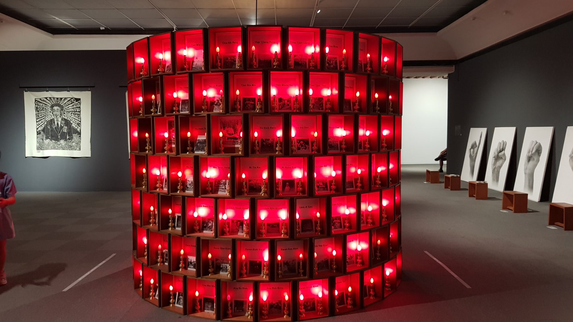 印尼藝術家胡丰文(FX Harsono)〈骨墓紀念碑〉(Bone Cemetery Monument)。為印尼排華事件的受難者發聲。(袁緒文攝影)