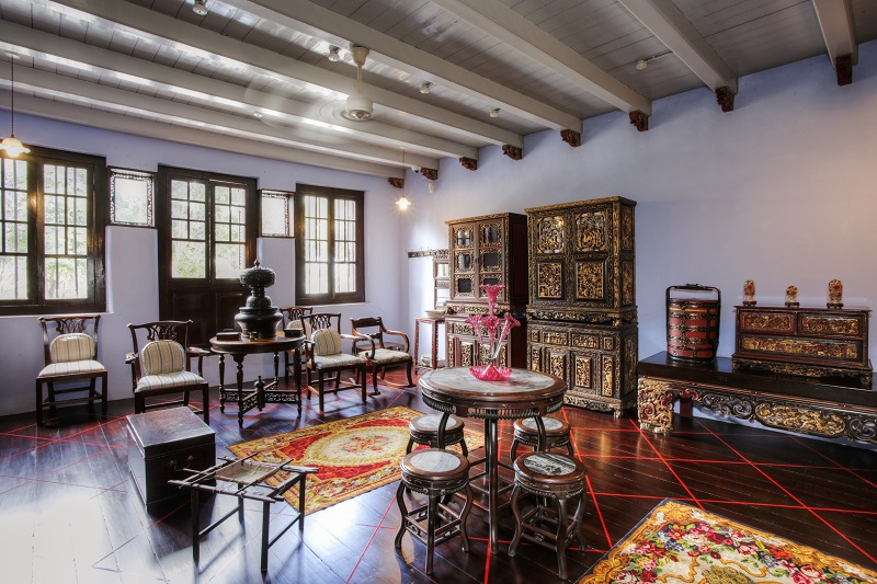 內部展示呈現當時華人在南洋接觸到的各種文化集合。像是西式的飾品物件,來自當年海上貿易所購買或收受的西式陶瓷、黑膠唱盤播放機、喇叭花造型音響與野生動物標本。同時,到處可見華人文化形象與繁體字撰寫的家訓與匾額。