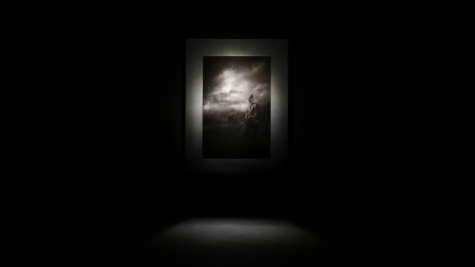 這樣的情感投射在〈招魂四聯作〉展間中特別強烈,攝影主題與材質調性非常契合,是陳傳興銀鹽創作之外的新鮮嘗試。送葬隊伍的影像以藝術微噴於鉛鋁複合板上,金屬反光質感像是一道被召喚的魔光,散發幽玄的魅影,引導觀者思索,是不是在生命中也有人這樣悄然離世。而「黑白」在此所扮演的角色是象徵的,傳達一種消逝、憂傷、深刻、時間,以無限衍義的狀態持續下去,攝影技術已昇華成攝影精神的追尋。