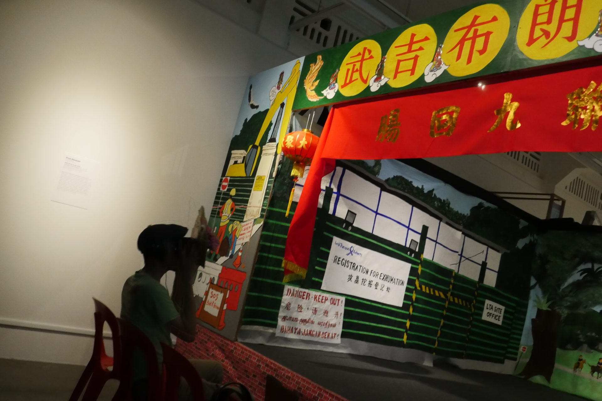 此次值得一提的作品是Post-Museum的〈武吉布朗(註1)指數#132:看不見的三聯畫〉,與新加坡當地文化及社會運動有關,結合紙紮、餓鬼節、墳墓文化、都更、新聞媒體、舞蹈演出與VR等裝置,讓觀眾在體驗的同時也成為作品的一部分,更讓人注意到文物保存與華人歷史的重要性。(延伸閱讀:【亞太博物館連線專欄】與先祖爭地—新加坡咖啡山墓園的保存議題)
