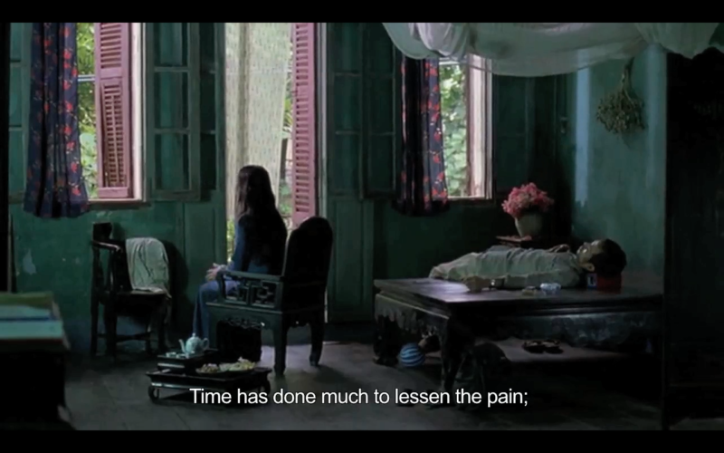 Image of the woman with her eighth man in Eleven Men. Footage from the movie Vertical Rays of the Sun directed by Trần Anh Hùng in 2000. Actress and actor: Như Quỳnh and Chu Hùng. Nguyễn Trinh Thi, Eleven Men, 2016. A still from single-channel installation, sound, 28 minutes. Image courtesy of the artist.