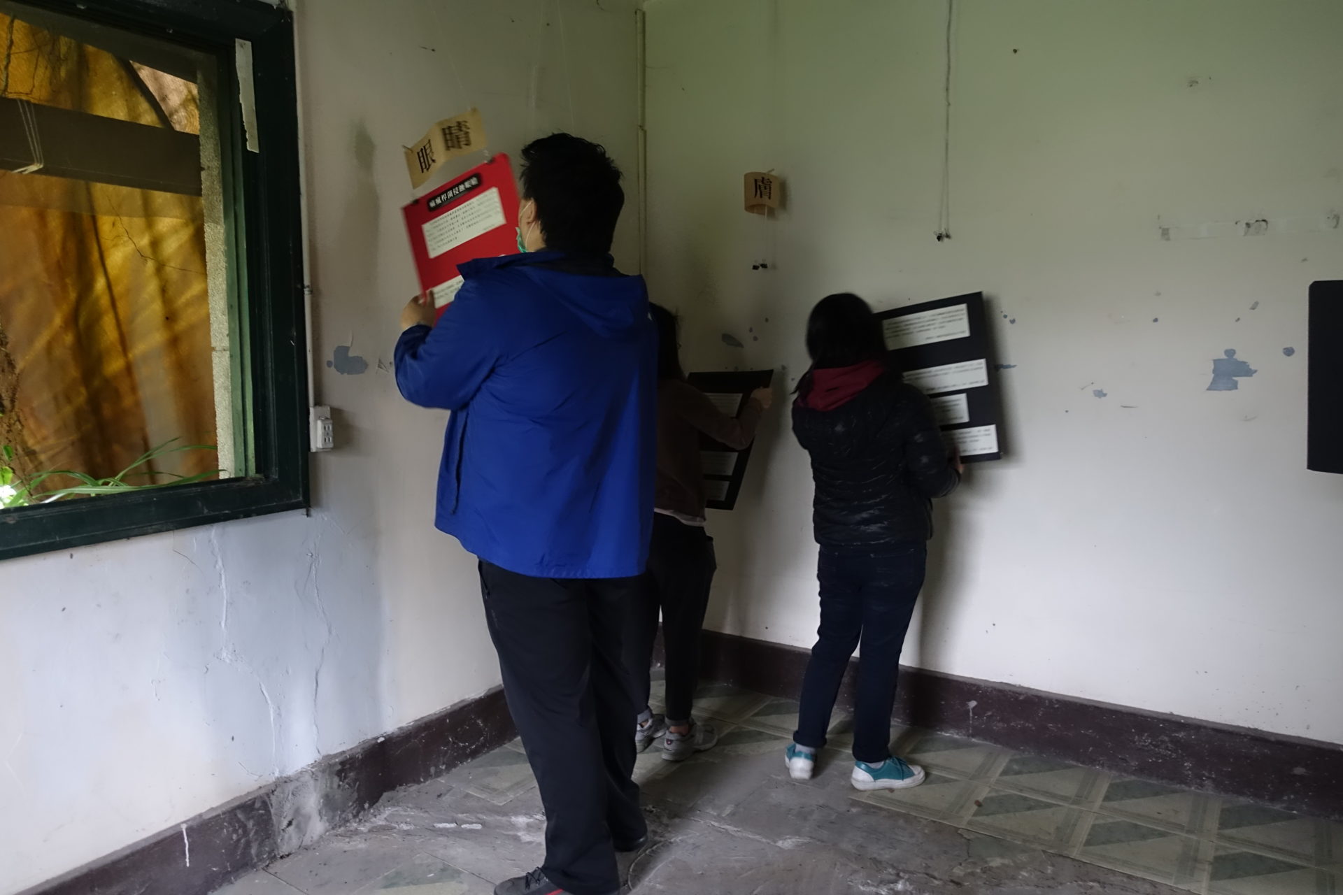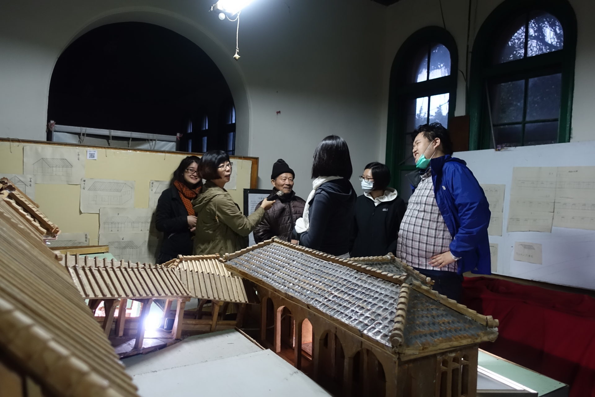 其中一位院民茆萬枝阿伯,帶著參訪者觀看他繪製的樂生院區建築平面圖,以及他引以為傲的木造建築模型。樂青聯盟成員黃祿則指著一張剪報,分享茆阿伯曾帶著裝上輪子的行政大樓模型,一同為保留運動發聲。參訪者看見這些壯觀的模型,以及茆阿伯樂觀開朗的分享,也藉此想像已被拆除的建築情景,更感受到院民如何透過不同的方式,保留、重構及分享記憶中的樂生。