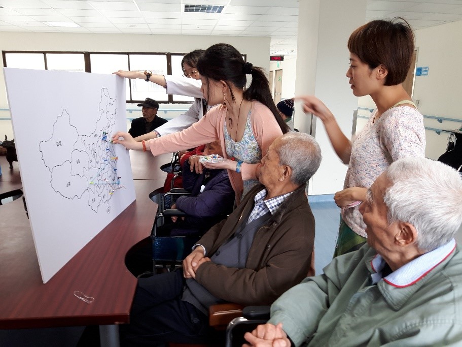 「我是黃埔軍校第十八期,十二歲就來到台灣,故宮文物到基隆時我也在那裡…」、「那年我到韓國當戰俘三年,死了很多人,很傷心…」,由故宮文物播遷史引導榮民長輩一同回顧那段戰亂的歲月,回憶起隨軍隊遷徒的過程,並用圖釘在地圖上標記他們住過的城市,以不同顏色的線串起移動路徑。亦有不少榮民長輩回憶起過去在原鄉生活的經驗,像是家鄉食物、風俗、親友等。