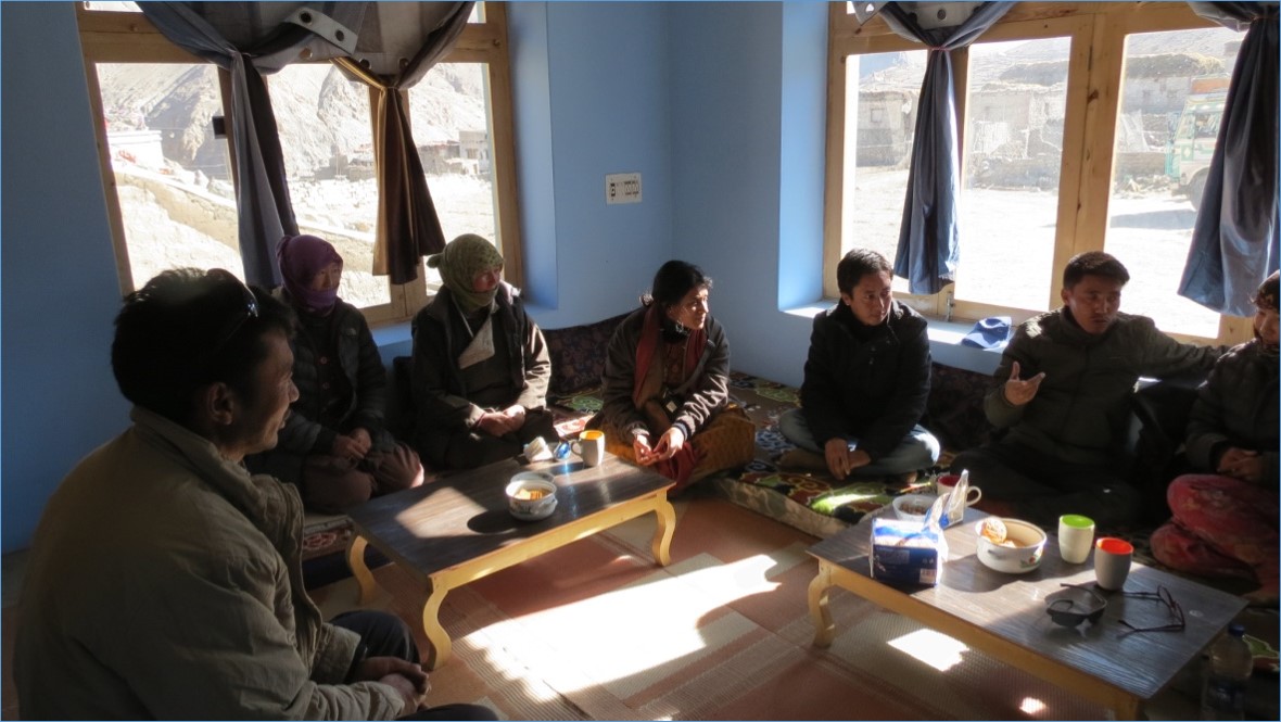 田野資料蒐集包括:村莊歷史、人口統計、考古遺跡、動物在生活中的角色等,我們在拉達克的資料蒐集策略是與當地居民保持緊密聯繫,包含:村長(地方望族)、地方議員、喇嘛,以及安排與婦女團體的會議,會議通常在晚餐後舉行,村裡的女性會齊聚一堂,確認我們做的事情對村莊有益。