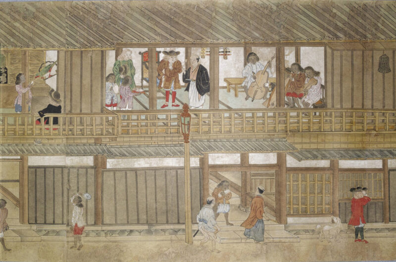 Dutch Trading House (part). Early 18th century. Attributed Watanabe Shuseki scroll. Kobe City Museum.