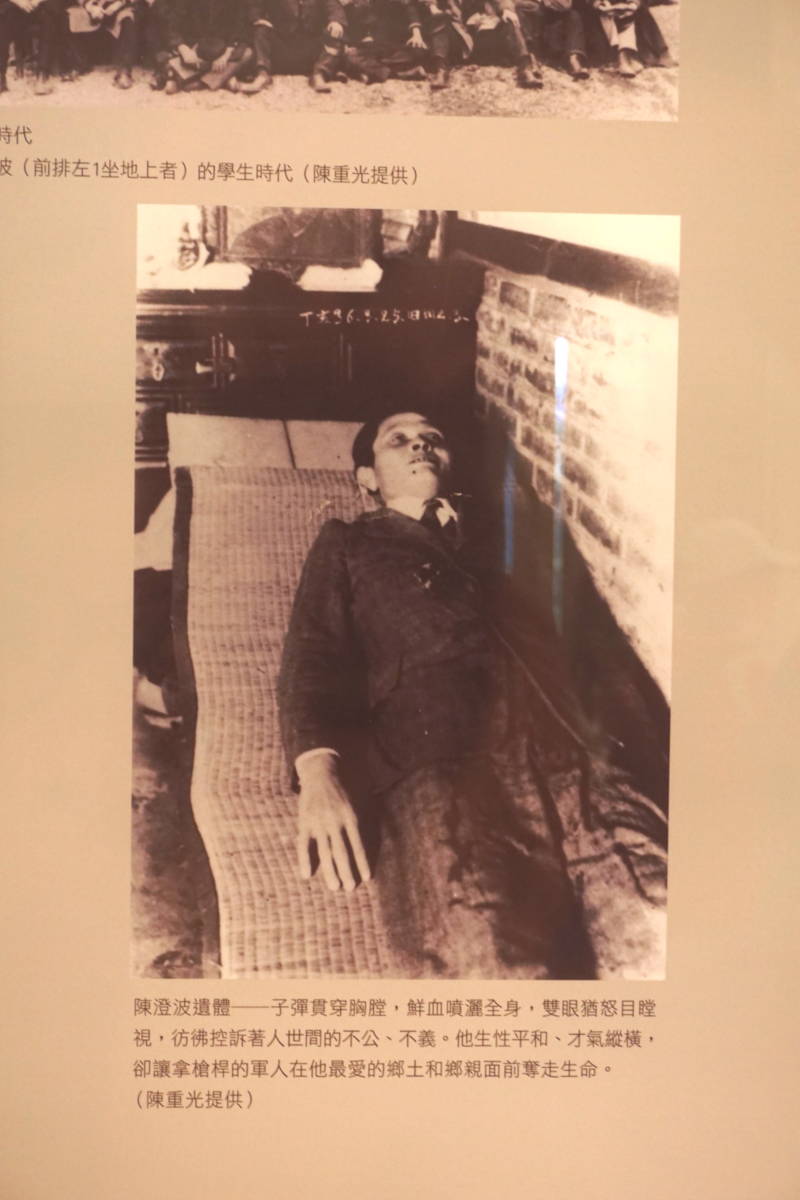 The meandering exhibition on the second floor of Taipei 228 memorial museum displays several elite victims based on different groups and professionals divided into 8 categories including 228 Incident Settlement Committee, Three Principles of the People Youth League, Political Construction Association of Taiwan Province, elected representatives, the press, the law, the academic and the medical. Through the objects and words, it seems that we had known them and summon the deceased to show their death in front of the viewers. Take Wang Tian-Deng for example, we can speculate his reading habits and background through his business cards, stopwatch, Chinese classic books like Four Books and Zuo Zhuan etc. and even imagine his meticulous personality while speaking from the stopwatch he usually brought with. Besides, by viewing Lu Bing-Qin’s belonging of the clothes after shooting, cash and suicide note in the pocket, we read the blood of the 228 incident and the heavy grief when saying farewell with his wife.