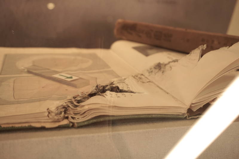 The meandering exhibition on the second floor of Taipei 228 memorial museum displays several elite victims based on different groups and professionals divided into 8 categories including 228 Incident Settlement Committee, Three Principles of the People Youth League, Political Construction Association of Taiwan Province, elected representatives, the press, the law, the academic and the medical. Through the objects and words, it seems that we had known them and summon the deceased to show their death in front of the viewers. Take Wang Tian-Deng for example, we can speculate his reading habits and background through his business cards, stopwatch, Chinese classic books like Four Books and Zuo Zhuan etc. and even imagine his meticulous personality while speaking from the stopwatch he usually brought with. Besides, by viewing Lu Bing-Qin’s belonging of the clothes after shooting, cash and suicide note in the pocket, we read the blood of the 228 incident and the heavy grief when saying farewell with his wife.