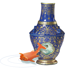 以香港城市大學邵志飛教授1995年先驅性的虛擬藝術作品The Golden Calf為藍本構思,將郎世寧創作的〈聚瑞圖〉及〈畫瓶花〉以實物大小的虛擬立體模型展示。透過平板電腦,觀眾可圍繞著兩個基座欣賞郎世寧的虛擬立體花瓶,甚至將花瓶捧在手心賞玩,仔細端詳郎世寧筆下中西合璧、鮮活雅致的瓶中花!