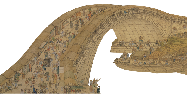 本次展場設計來自多寶格的巧思,經由套匣、抽屜概念開展成型,故宮的數位科技聚焦視覺震撼與穿透的臨場既視感,相較於觀覽文物的真實性,科技工具的詮釋提供跨域的無限想像。以科技踐履華夏典藏研究成果,運用數位VR延伸轉化,便將畫中千古風情成為可居、可遊、可望的任意穿梭及擷取,隨著工具的應用加速普及,古畫的世界不再遙不可及,巡迴全臺各城市與偏鄉,亦馳騁國際展現臺灣文化科技島的傲人成就。