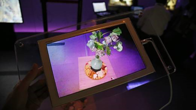 由故宮與臺灣夏普聯合拍攝首部8K文物影片,以8K鏡頭呈現故宮院藏「清 乾隆 霽青描金游魚轉心瓶」的精緻工藝之美,外瓶霽青釉上描金彩繪的細膩呈現,更凸顯內層套瓶水草魚紋圖案的栩栩如生,展現8K技術與數位科技對文物保存的重要性。未來,故宮將陸續拍攝文物系列影片,應用8K技術於博物館藝術教育工作。