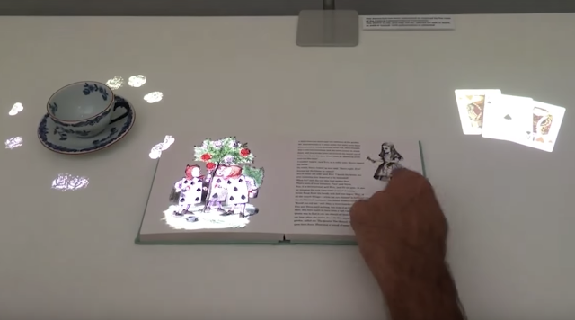 還是習慣地不定時去看看Google Experiments網站中有什麼新的創意與技術,順便跟上互動科技的進度。Google的開放源分享總能吸引全世界數位程式高手貢獻腦力,許多尚未正式發表之技術或服務的測試成果,也都會展示在此實驗平台中。其他大型公司也會架設網站宣傳研發新訊,像是索尼Sony的Future Lab網站中所展示的「T」(很有神秘感的代號)就是一款尚未上市的互動投影產品,這款投影機裝置不僅有手勢控制功能,也搭載3D深度感測與機器學習技術,不僅可將桌面轉換成觸控桌,任何擺在桌上的物件也都能透過投影呈現進行相當直覺的互動設計。早在2016年就曾發表過的測試影片,就將桌上的「愛麗絲夢遊仙境繪本」印刷品變成有可觸控有動畫的互動物件,而2017年5月發表的Xperia Touch Projector就是款使用「T」技術的科技新品。